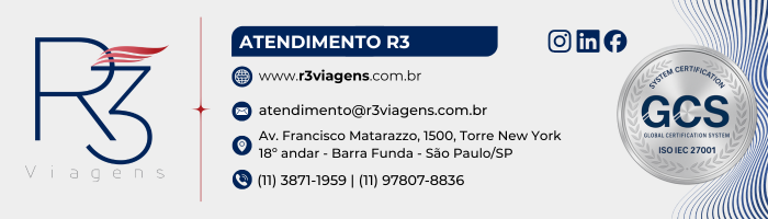 Caso prefira fazer sua reserva via agência de viagens, bem como emissão de passagem aérea, entre em contato com o Ronaldo Ruiz, da R3 VIAGENS. Contatos abaixo: